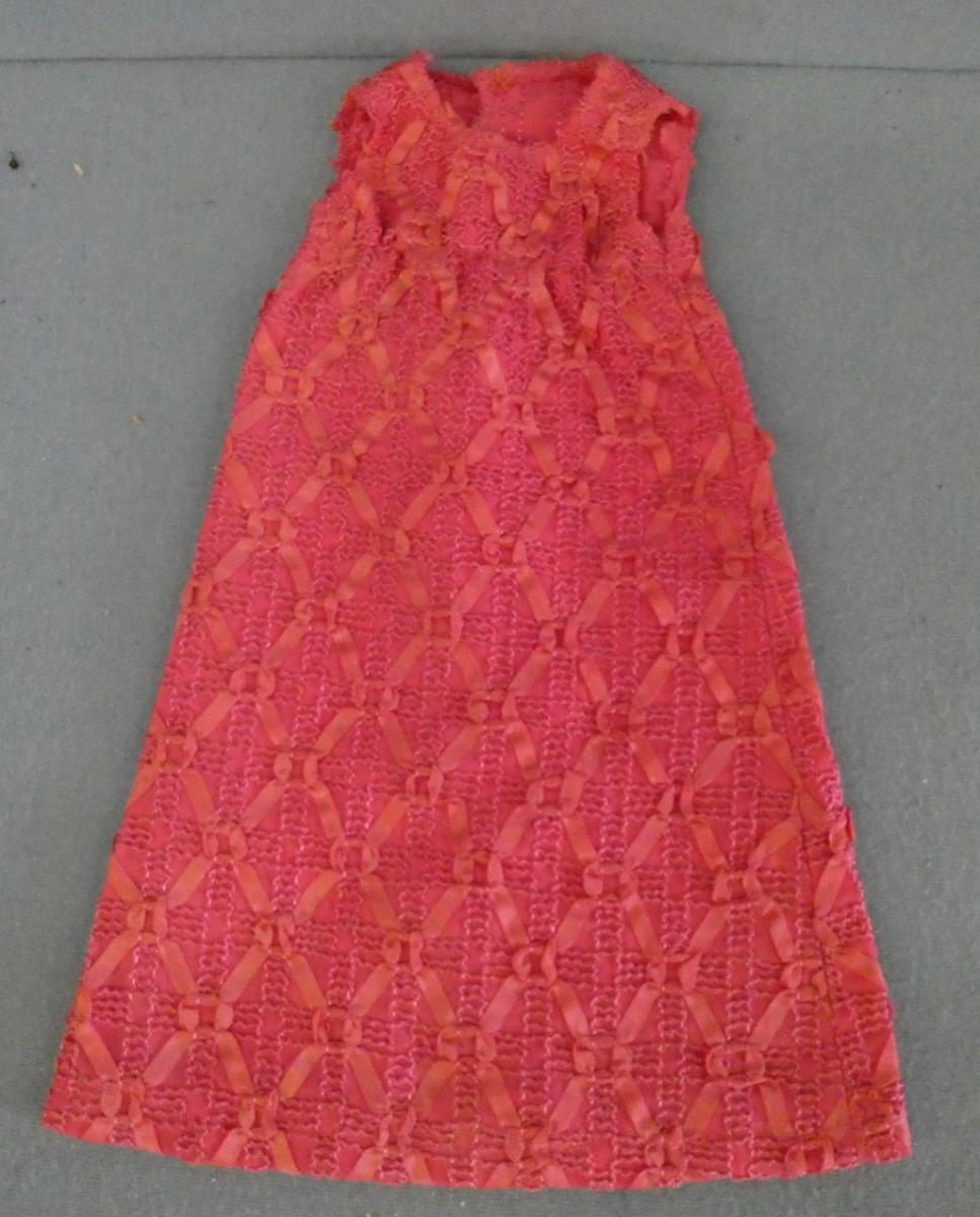 DC8051 11" Shoulder to Hem Pink Gown Unusual and beautiful fabric Price: $20.00Status: Available Additional Images