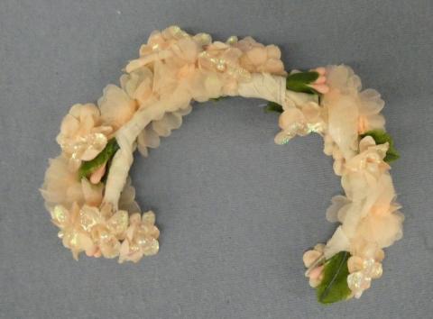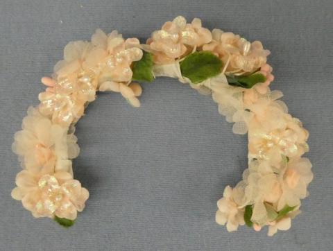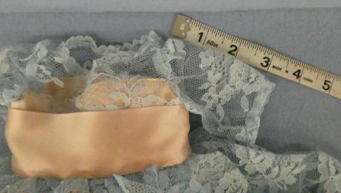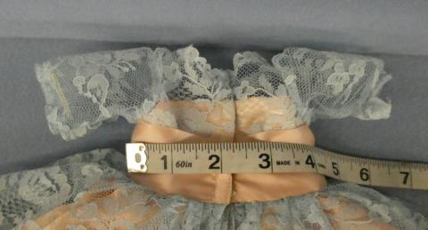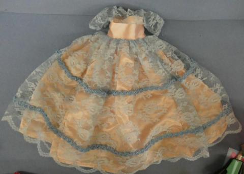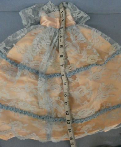 **DC8079 Orange and Blue Lace Gown with Hooped Petticoat 16" Shoulder to Hem Custom Made for an 18" Dolll by Betty Herr Includes Hair Decor Band Price: $35.00Status: Available Additional Images