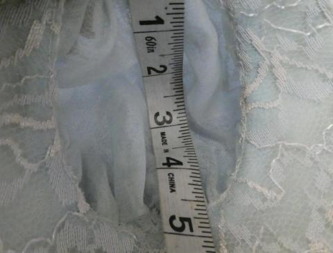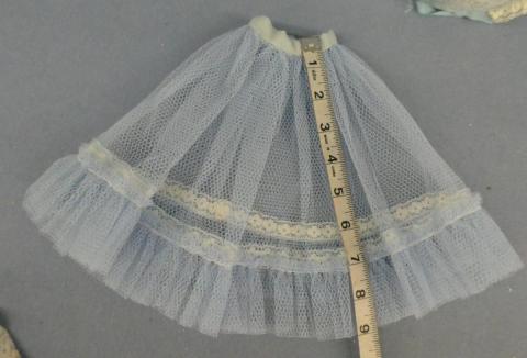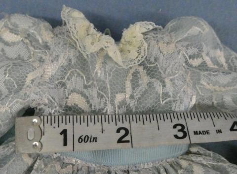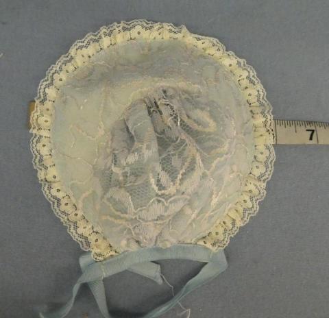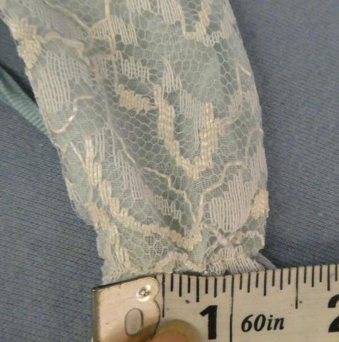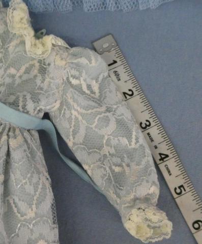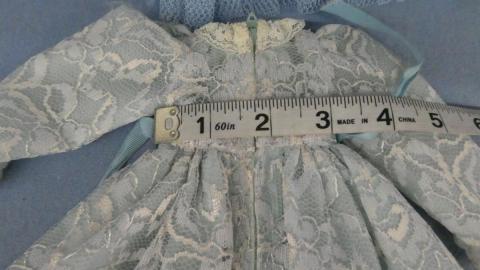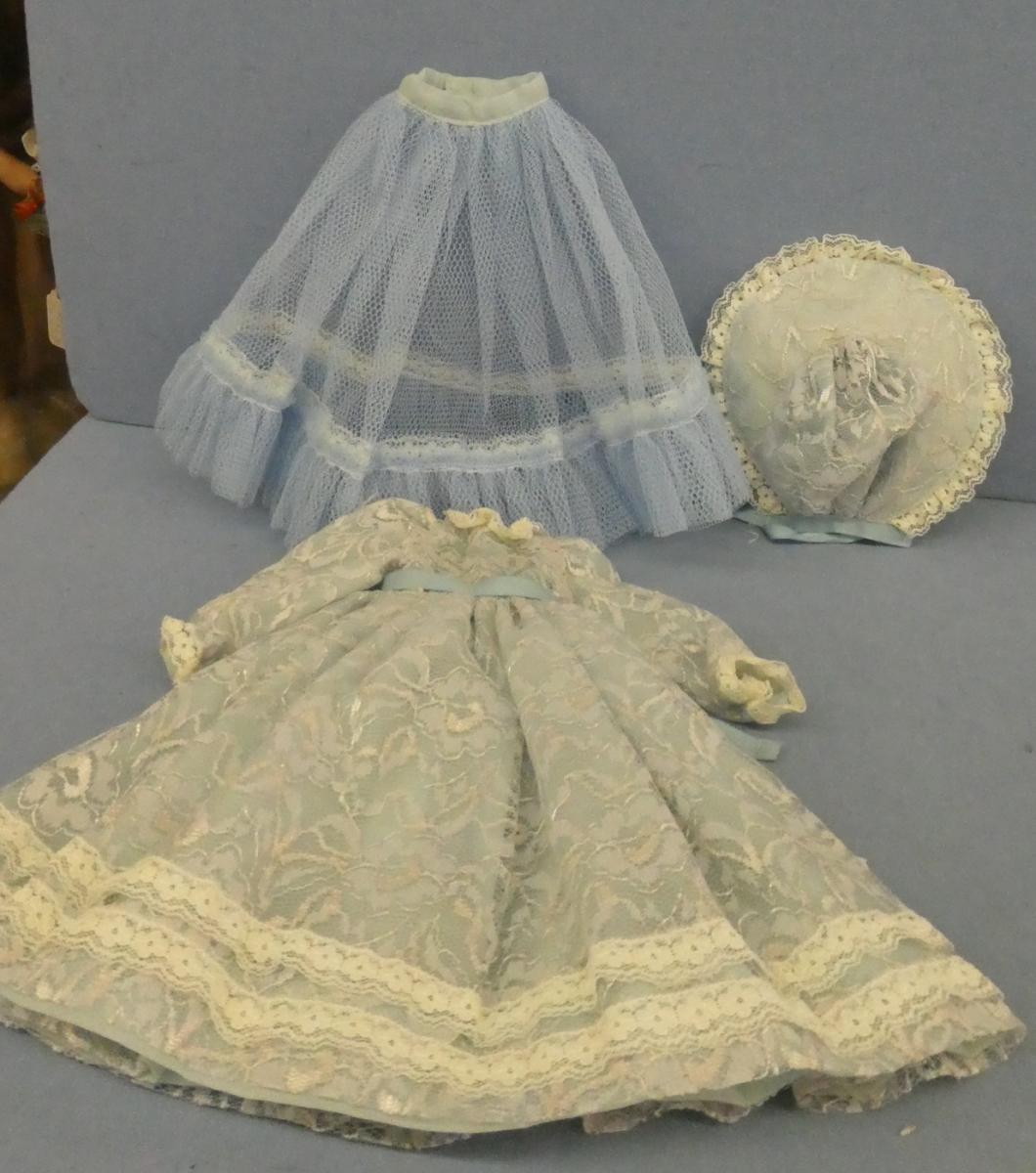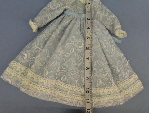 **DC8103 Vintage Blue Lace Gown with Petticoat and Hat 11" Shoulder to Hem Hat 6" Across Zipper Closure Price: $15.00Status: Available Additional Images