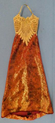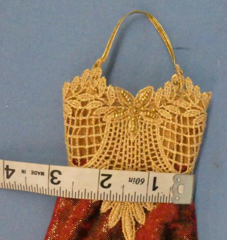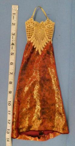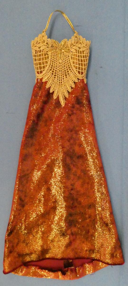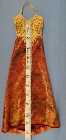 ++DC9000 Red/Gold Velvet Gown with Gold Top 14" Neck to Front :Hem for Slim Doll Price: $20.00Status: Available Additional Images
