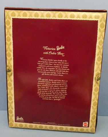1999 Victorian Barbie with Cedric Bear Victorian Barbie with Cedric Bear 25626 (box wear from storage) Year: 1999Price: $30.00Condition: Never Removed From BoxStatus: Available Additional Images