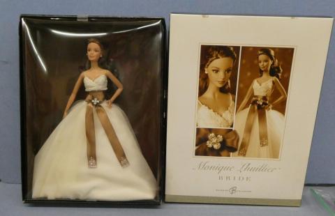 2006 Monique Lhuillier Bride Barbie Monique Lhuillier Bride J0960 (minor wear to edges of inner box and along front top edge of lid) Year: 2006Price: $175.00Condition: Never Removed From BoxStatus: Available Additional Images