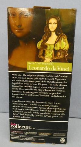 * 2010 Leonardo da Vinci Barbie The Museum Collection Barbie doll inspired by Leonardo da Vinci V0444 (box dented from storage) Year: 2010Price: $150.00Condition: Never Removed From BoxStatus: Available Additional Images