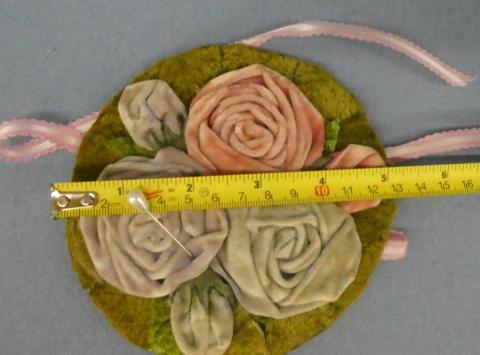 **HAT118 Vintage Flat 5" Green Velvet with 3 Velvet Flowers Includes Hat Pin Price: $5.00Status: Available Additional Images