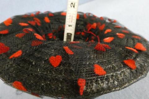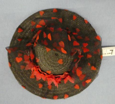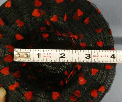 HAT21 6 1/2" Across Black with Hearts and Flowers
