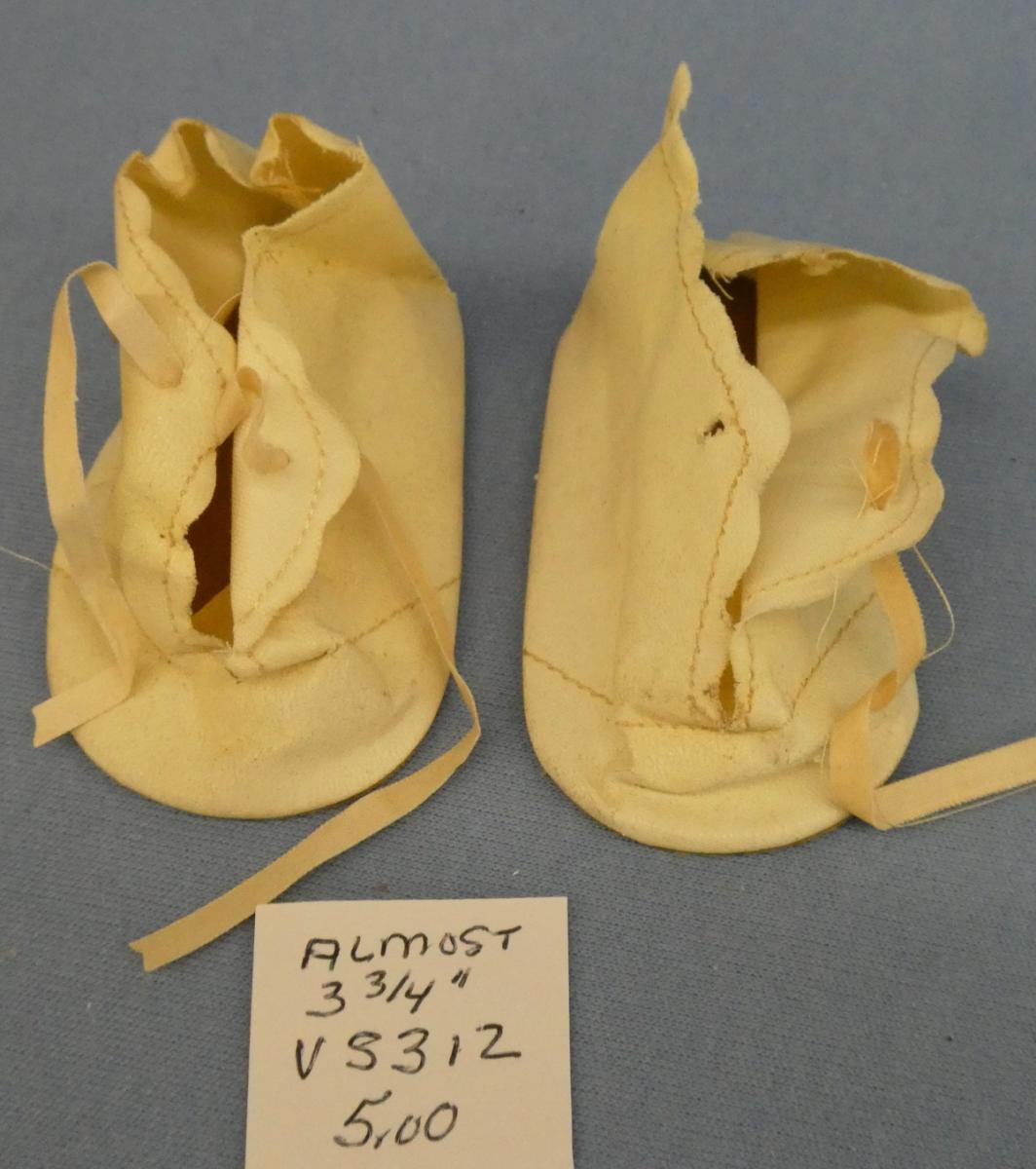 ~ VS312A Almost 3 3/4" cream Oil Cloth Baby Shoes