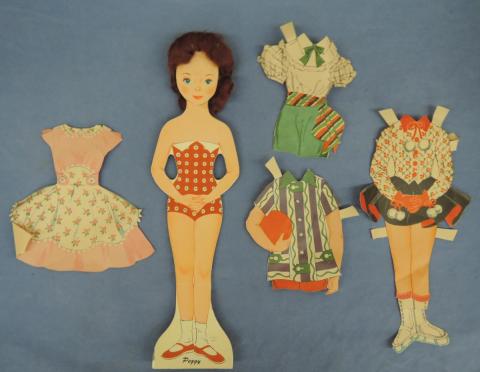 Paper Doll 11 1/4" Paper Doll Peggy with assorted clothes and accessories Price: $10.00Status: Available Additional Images