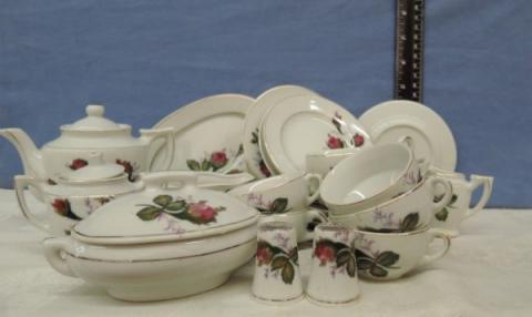 Porcelain Dinner Set 6-Piece Dinner Set with extras Made in Japan marked No chips or breaks Dinner Plate is 4 1/2" across 40.00
