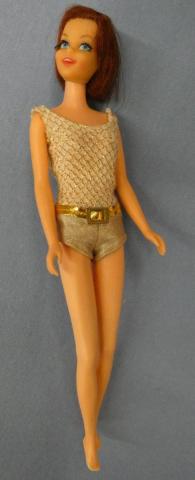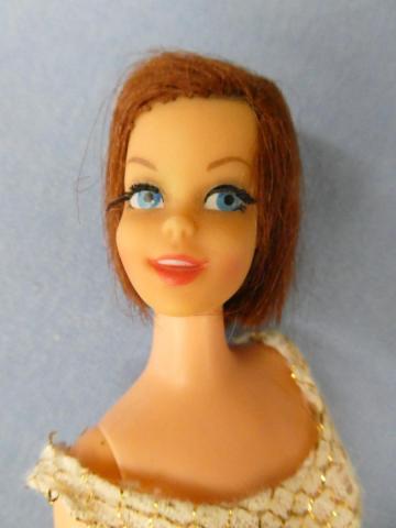 VB5031 Twist n Turn Casey Auburn Mattel Twist n Turn Casey 1968 Auburn haired (some brunettes change over time to shades of red) ~good hair, Knees click nicely ~head shows sign of green at left ear Price: $125.00Status: Available Additional Images