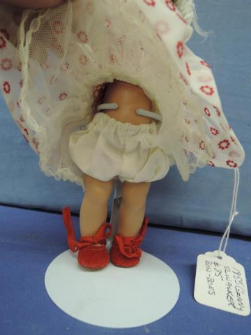 GIN129 VOGUE Ginny Ginny by Vogue #85 Bon-Bons All Original, tagged dress Straight-leg Walker Molded lash Year: 1955Price: $60.00Status: Available Additional Images