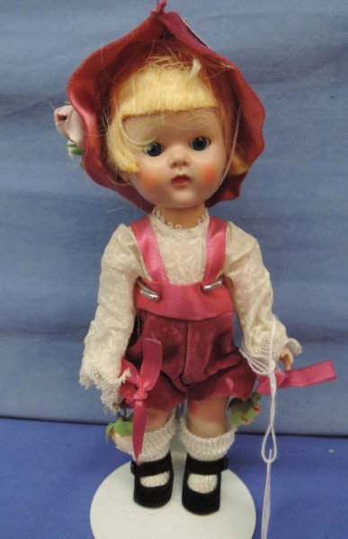 GIN131 Vogue~ 1950's Ginny Ginny All original Brows have turned green Outfit has bled onto legs Straight leg Walker Price: $125.00Condition: MintStatus: Available Additional Images