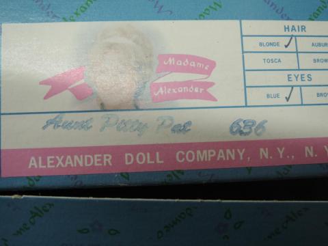 Madame Alexander Aunt Pitty Pat #636 8" Aunt Pitty Pat from Gone with the Wind Made in New York Year: 1991Price: $60.00Condition: Mint in BoxStatus: Available Additional Images