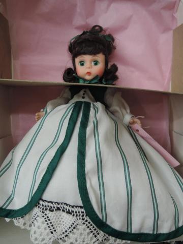 Madame Alexander Scarlett "green stripes" #641 8" Scarlett O'Hara Scarlett Series Year: 1993Price: $40.00Condition: Mint in BoxStatus: Available Additional Images