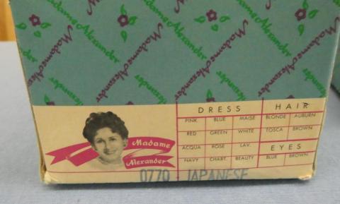Madame Alexander 8" Japan #0770 International Series Straight Leg Year: 1973Price: $40.00Condition: Mint in BoxStatus: Sold Additional Images