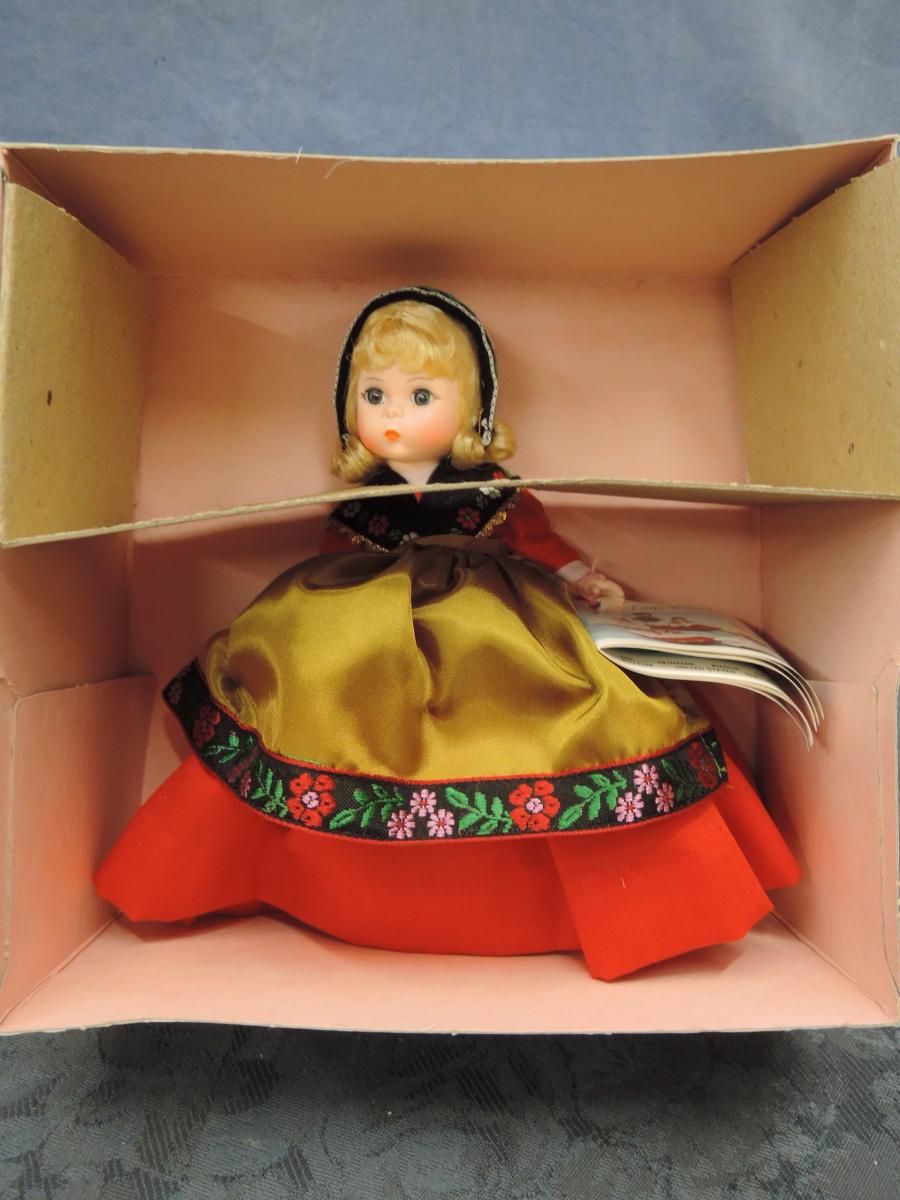 MAI258 Sweden 8" Madame Alexander International series 8" Sweden # 592 Price: $40.00Condition: Mint in BoxStatus: Available Additional Images
