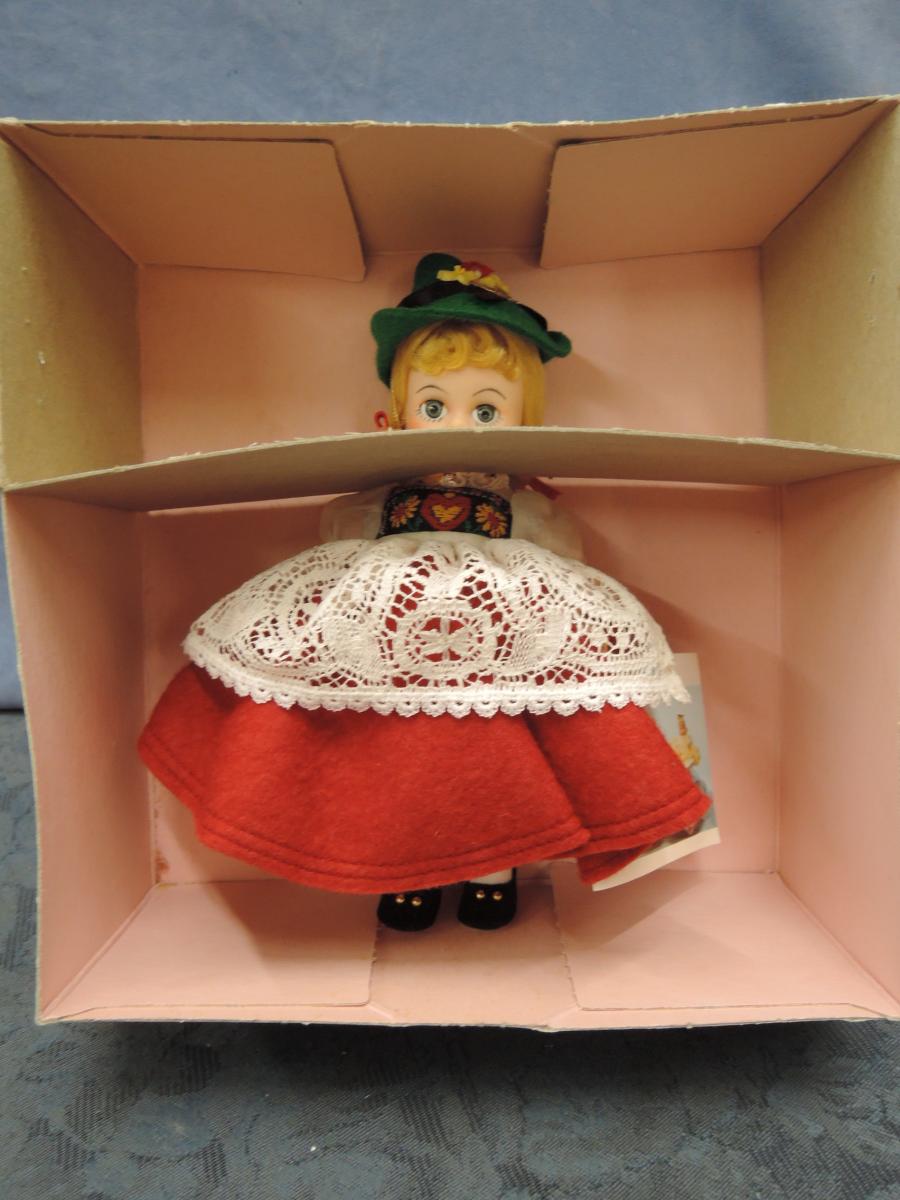 MAI259 Switzerland 8" Madame Alexander International series 8" Switzerland Price: $40.00Condition: Mint in BoxStatus: Available Additional Images