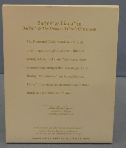 HALLMARK Barbie as Liana ornament Hallmark Keepsake Ornament Barbie and the Diamond Castle Barbie as Liana 04264 Year: 2008Price: $15.00Condition: Mint in BoxStatus: Available Additional Images