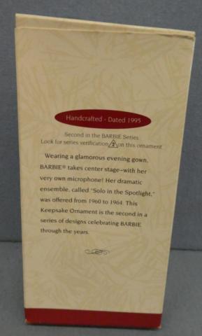 HALLMARK Barbie Solo in the Spotlight ornament Hallmark Keepsake Ornament Solo in the Spotlight Barbie 17666 Year: 1995Price: $15.00Condition: Never Removed From BoxStatus: Available Additional Images