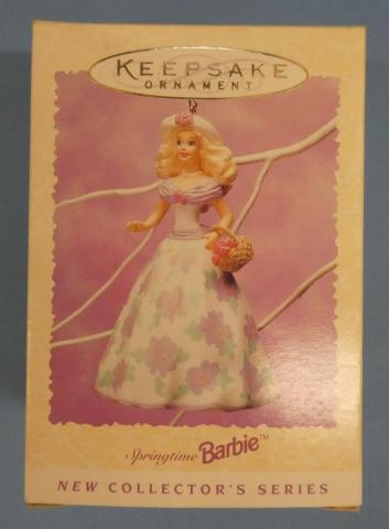 Hallmark 1995 Springtime Barbie ornament Hallmark Keepsake Ornament Easter Collection Springtime Barbie 26319 (old price tag reside on top of box) Year: 1995Price: $10.00Condition: Never Removed From BoxStatus: Available Additional Images