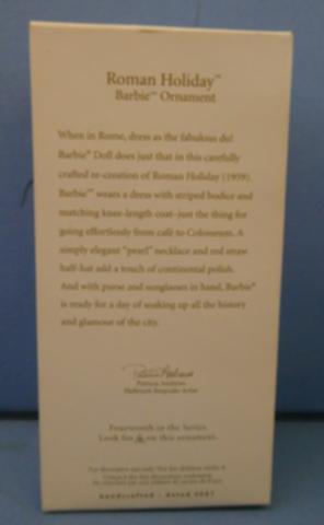 Hallmark Barbie Roman Holiday ornament Hallmark Keepsake Ornament Barbie Roman Holiday 97655 Year: 2006Price: $16.00Condition: Never Removed From BoxStatus: Available Additional Images