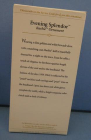 Hallmark Barbie Evening Splendor ornament Hallmark Keepsake Ornament Barbie Evening Splendor 92205 Year: 2005Price: $16.00Condition: Never Removed From BoxStatus: Available Additional Images