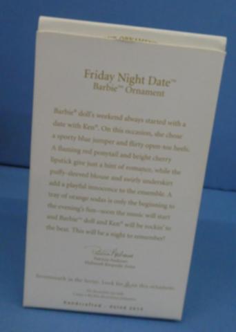 Hallmark Friday Night Date Barbie ornament Hallmark Keepsake ornaments Friday Night Date 14209 Year: 2009Price: $17.00Condition: Never Removed From BoxStatus: Available Additional Images