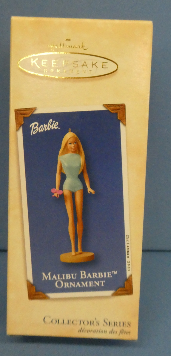 Hallmark Malibu Barbie ornament Hallmark Keepsake ornaments Malibu Barbie 74593 Year: 2002Price: $16.00Condition: Never Removed From BoxStatus: Available Additional Images