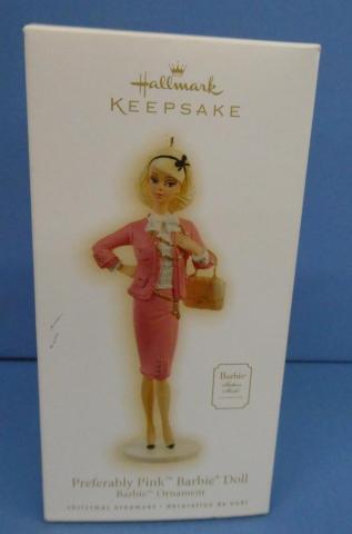 Hallmark Preferably Pink Barbie ornament Hallmark Keepsake Ornament Preferably Pink Barbie Barbie Fashion Model Collection 07901 Year: 2008Price: $16.00Condition: Never Removed From BoxStatus: Available Additional Images