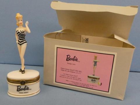 BBHB#1 Barbie Hinged Box Original Bathing Suit and Beachball by Midwest of Cannon Falls Year: 2001Price: $15.00Condition: Mint in BoxStatus: Available Additional Images