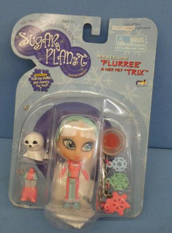 MGA Sugar Planet Flurree MGA Sugar Planet Flurree and her pet Trix 257530 (minor card wear) Year: 2002Price: $25.00Condition: Never Removed From BoxStatus: Available Additional Images