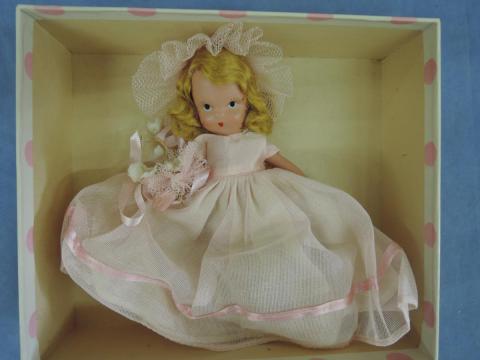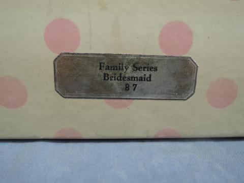 + NA087A Bridesmaid #87 Nancy Ann Storybook Family Series #87 Bridesmaid Frozen Leg, no tag Price: $20.00Status: Available Additional Images