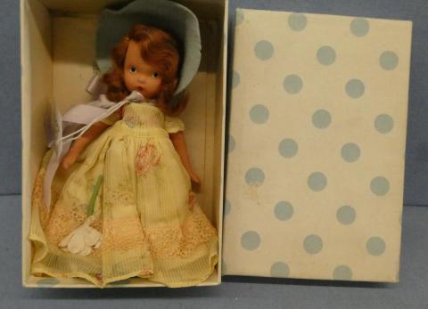 + NA113A Roses are Red #113 Nancy Ann Storybook Dolls Roses are Red, Violets are Blue #113 ~tiny chip on arm ~frozen legs ~Nancy Ann stand Price: $20.00Status: Available Additional Images