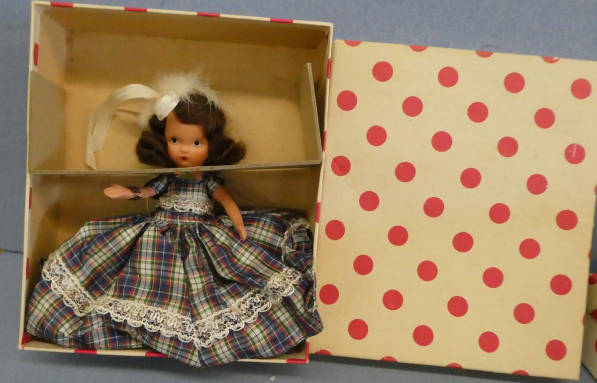 + NA178C Nancy Ann Storybook Give Me a Lassie #178 as Sweet as She is Fair Frozen legs, hang tag and box Price: $20.00Status: Available Additional Images