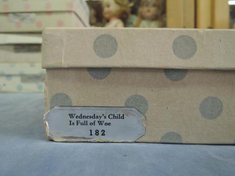 + NA182E Wednesday's Child is Full of Woe Nancy Ann Storybook #182 Wednesday's Child is Full of Woe Frozen leg, no tag Price: $20.00Status: Available Additional Images