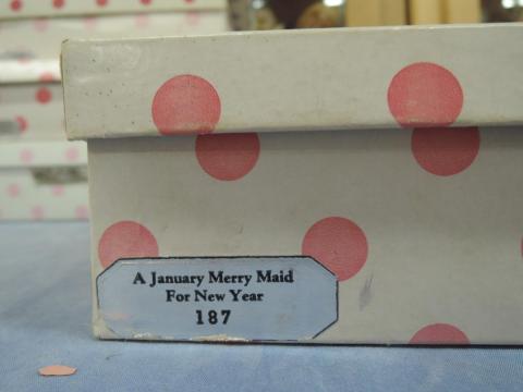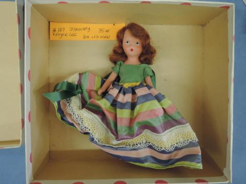 + NA187A a January Merry Maid for New Year Nancy Ann Storybook #187 A January Merry Maid for New Year Frozen Leg,, no tag Box is torn Price: $15.00Status: Available Additional Images