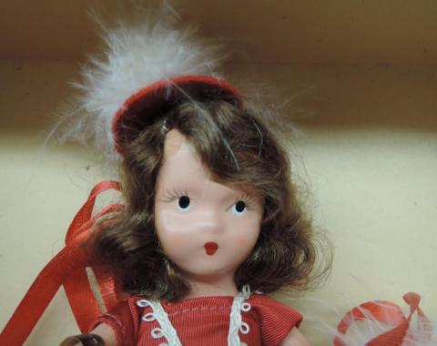 + NA198C December #198 Nancy Ann Storybook dolls #198 For December Just a Dear Frozen legs, wrist tag, Price: $20.00Status: Available Additional Images