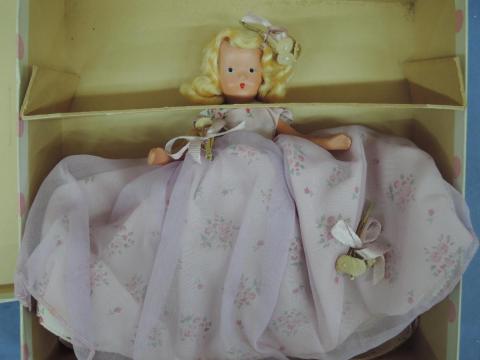 + NA259B Lady in Waiting Daralene Nancy Ann Storybook In Powder and Crinoline Series #259 Lady in Waiting Daralene Jointed legs, no tag Price: $40.00Status: Available Additional Images