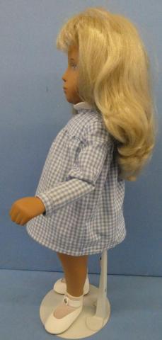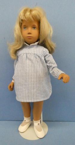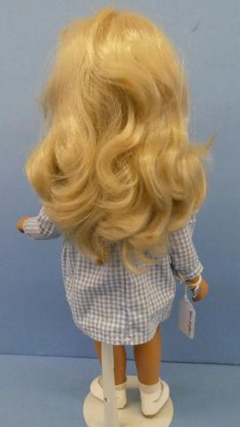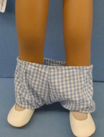 SAS110 Sasha #107 in Blue Gingham Sasha in Gingham Velcro enclosure on dress Brown cord stringing Price: $95.00Status: Available Additional Images