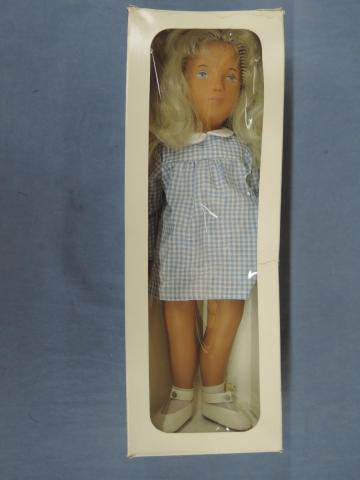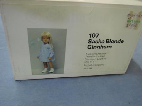 SASHA #107 Blonde-- Gingham (#1) Sasha in blonde #107 "Gingham" damage to box from age Snaps to shoes broken (and corroded from age), small stain on sock Price: $185.00Status: Available Additional Images