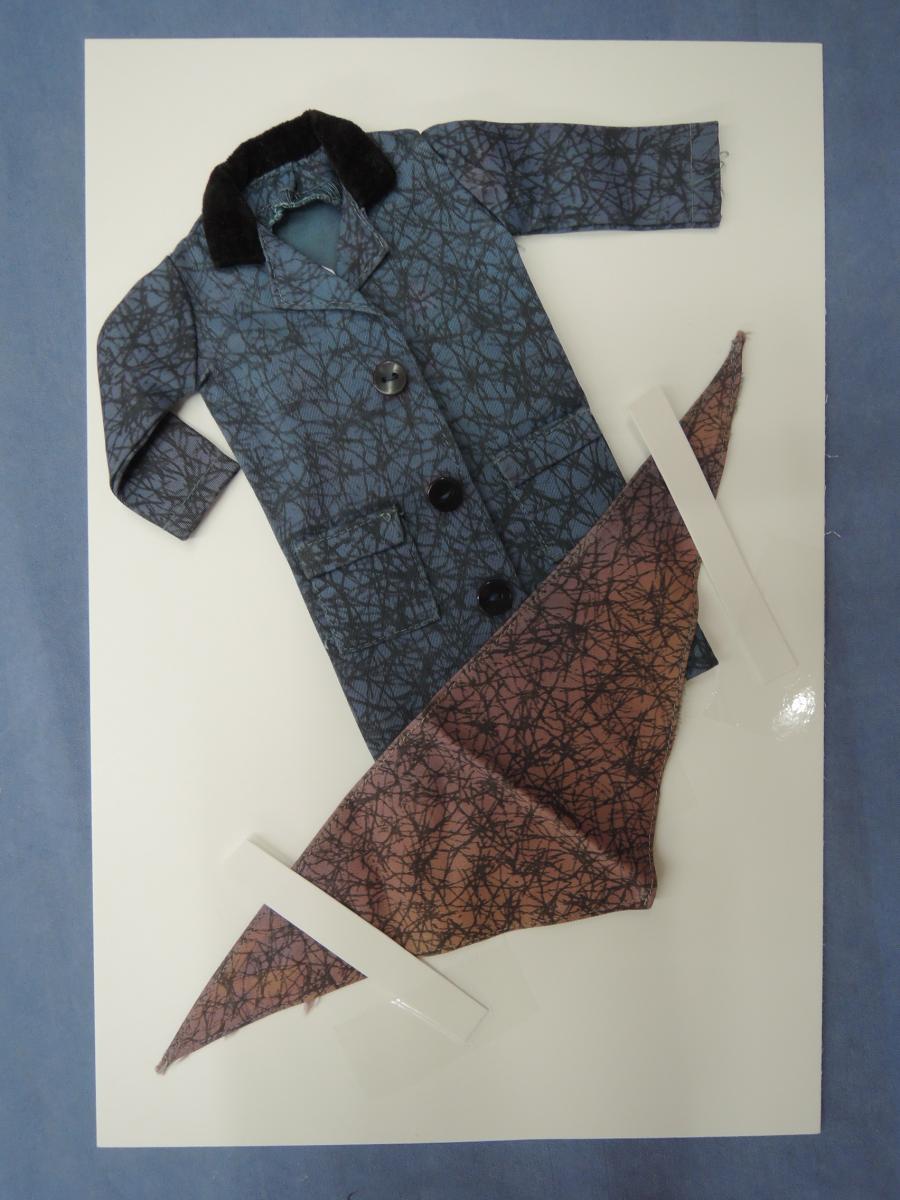 ID514 Ideal " Puddle Jumper" Tammy outfit "Puddle Jumper" Tammy fashion #9111-6 or 9921-8 Missing: umbrella : ankle boots :red purse Scarf is faded to purple, coat has areas of fading Price: $10.00Status: Available