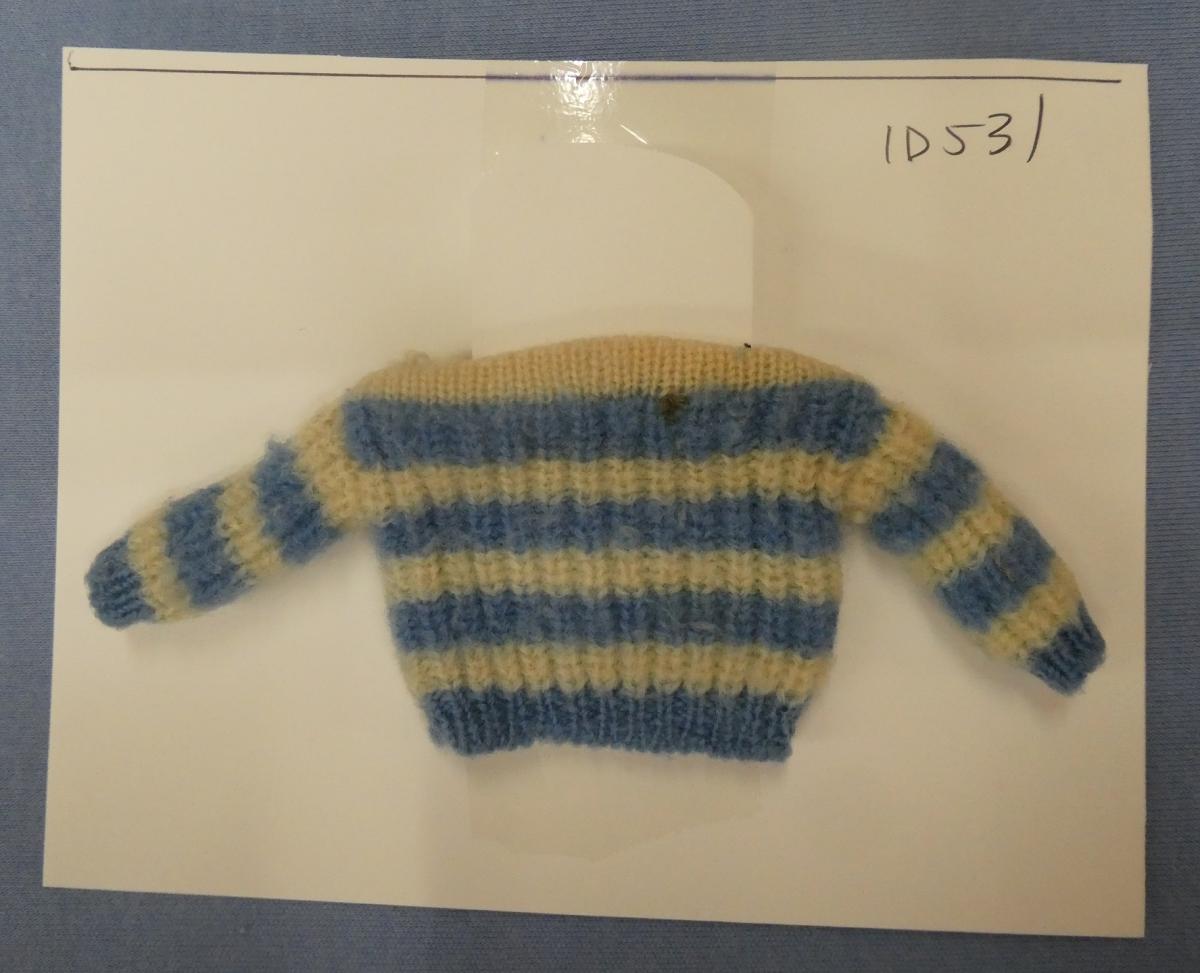 ID531 "Sweater" IDEAL Tammy pack fashions IDEAL Tammy Pack fashions "Sweater" (blue and white version) Missing scarf (some dirt on front) Price: $10.00Status: Available