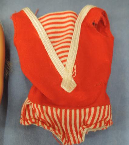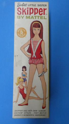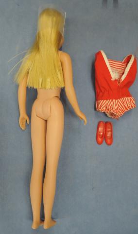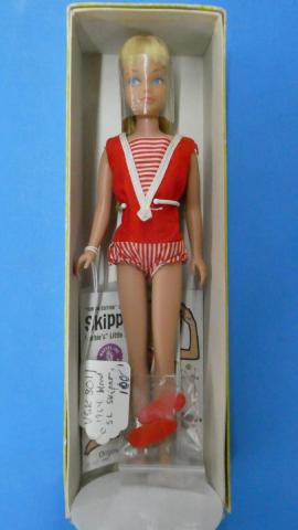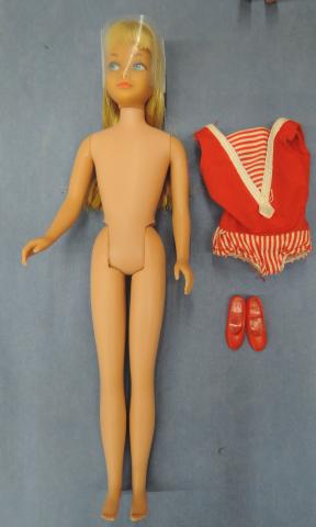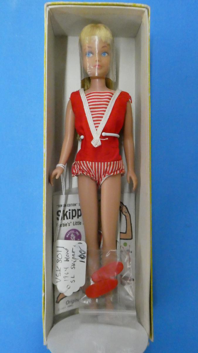 VSK8011 1964 Straight Leg Skipper Straight Leg Skipper 1964 blonde ~good condition ( paint rub on brow, head a bit darker than body) ~Includes swimsuit, shoes, booklet, box ~swimsuit not mint Price: $100.00Status: Available Additional Images