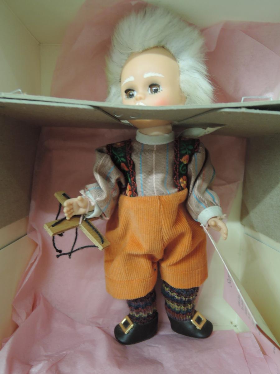 Madame Alexander Geppetto (#2) #478 8" Geppetto (shirt fabric variation) missing glasses Year: 1993Price: $40.00Condition: Mint in BoxStatus: Available Additional Images