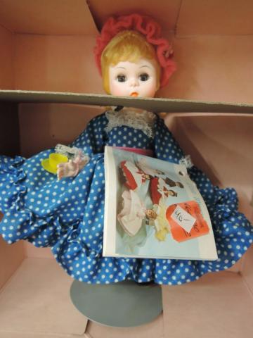 Madame Alexander Little Miss Muffet (#1) #452 8"Little Miss Muffet Made in New York Year: 1981Price: $40.00Condition: Mint in BoxStatus: Available Additional Images