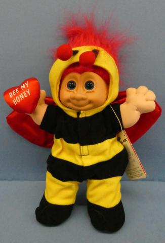 TRO1025 Wee Troll Kidz ~ Bee My Honey Russ Wee Troll Kidz 1990s Bee My Honey vinyl head, soft body about 9" tall to top of head Price: $15.00Status: Available Additional Images