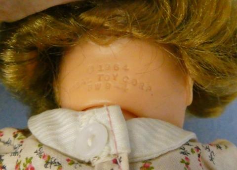 9" Betsy Wetsy by Ideal Marked 1964 Ideal Toy Corp. BW9-1 Vinyl head and body Right brow has rub Price: $75.00Status: Available Additional Images