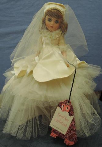 American Character Sweet Sue Sophisticate 14" Sweet Sue Sophisticate by American Character #148 All Original with hang tag Dress has a little aging on edge of layers on dress Year: 1957Price: $160.00Condition: MintStatus: Available Additional Images