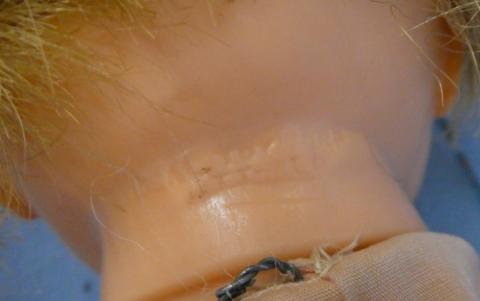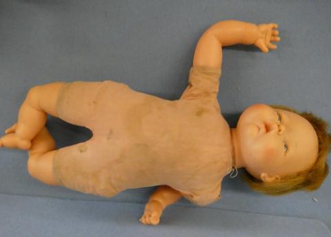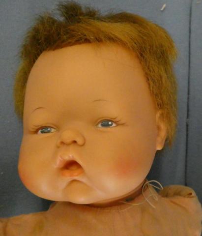 ** Ideal 20" Thumbelina with Wooden Knob She does work but sometimes needs a little press on her tummy Redressed Price: $125.00Status: On Hold Additional Images