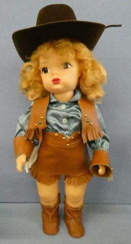 TL0030 Terri Lee Hard Plastic Wearing cowgirl outfit Tagged Blouse Replace vintage hat Price: $125.00Status: Available