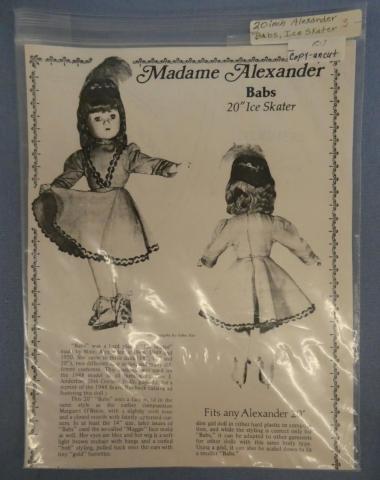 MADAME ALEXANDER BABS PATTERN Ice Skating Outfit for 20" Composition Doll Copy, uncut Price: $20.00Status: Available Additional Images